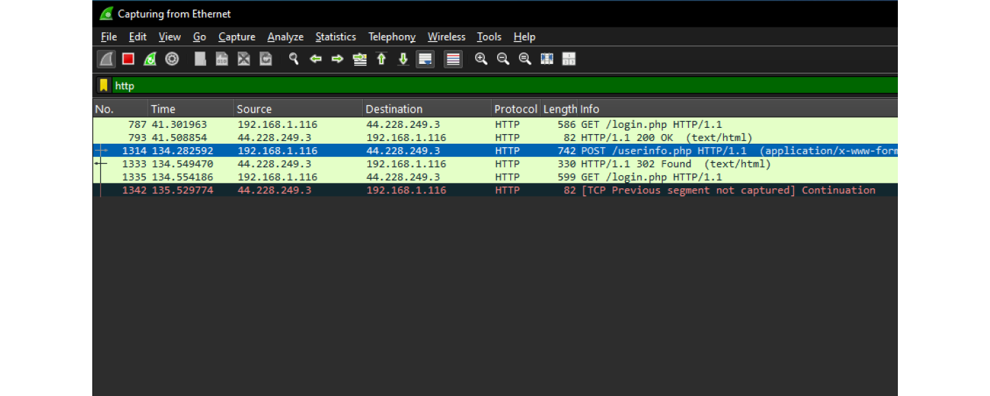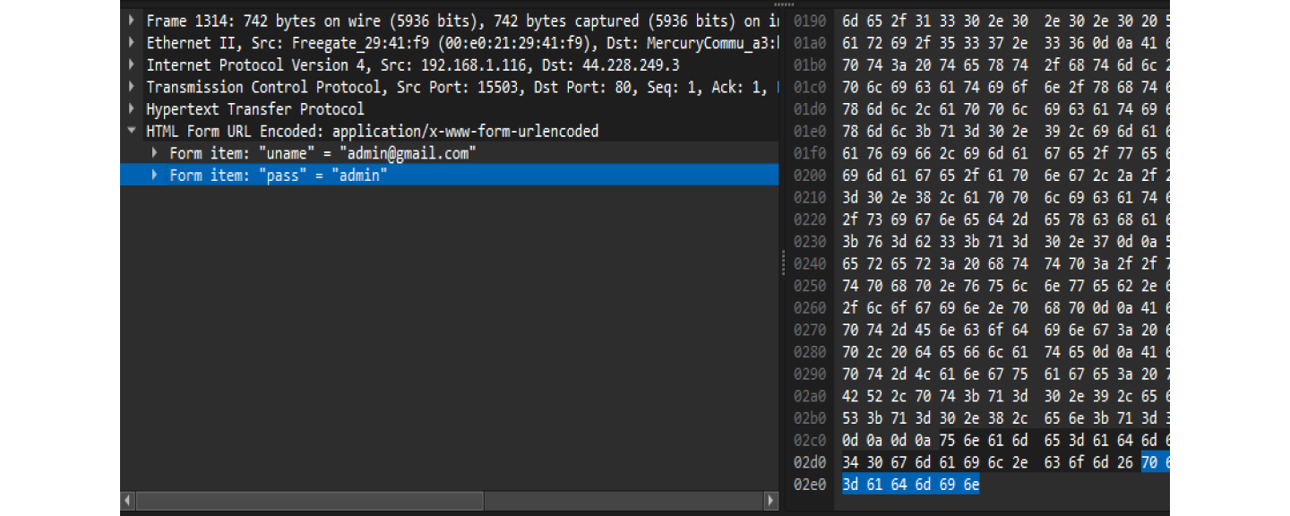 No Wireshark, procure os pacotes que contêm informações de formulários talvez possa estar em (POST).