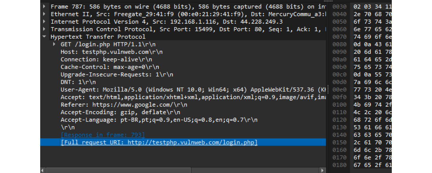 Quando você acessar um site que utiliza HTTP, o tráfego será transmitido em texto simples. Isso significa que qualquer dado enviado, como senhas, e-mails, dados de formulários, entre outros, será visível no tráfego de rede. No Wireshark, você pode ver diretamente esses dados, desde que o tráfego não seja criptografado.
